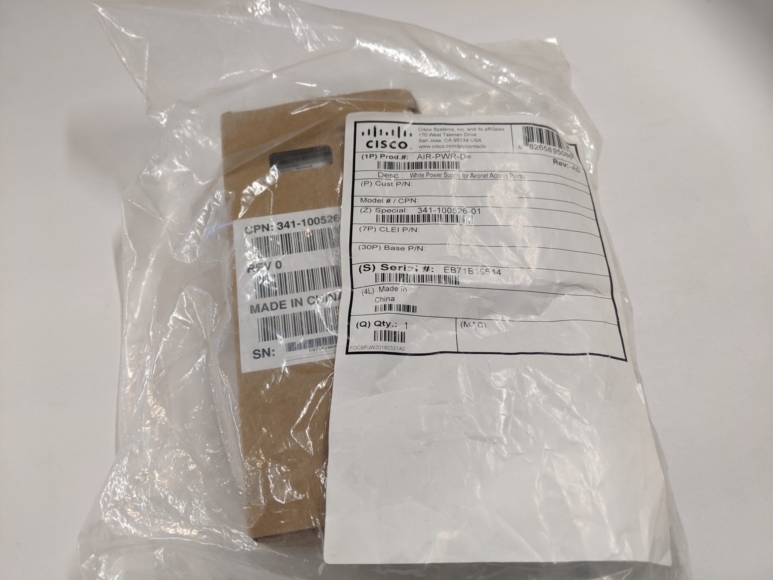 The Cisco AIR-PWR-D is a Power over Ethernet (PoE) injector designed for use with Cisco Aironet 1800 wireless access points. It allows you to power Cisco devices such as access points and IP phones using the same Ethernet cable that carries data. This simplifies installation and reduces the need for separate power cables, making it an efficient and convenient solution for powering your network devices. The Cisco AIR-PWR-D is easy to install and use, and is compatible with a wide range of Cisco equipment.