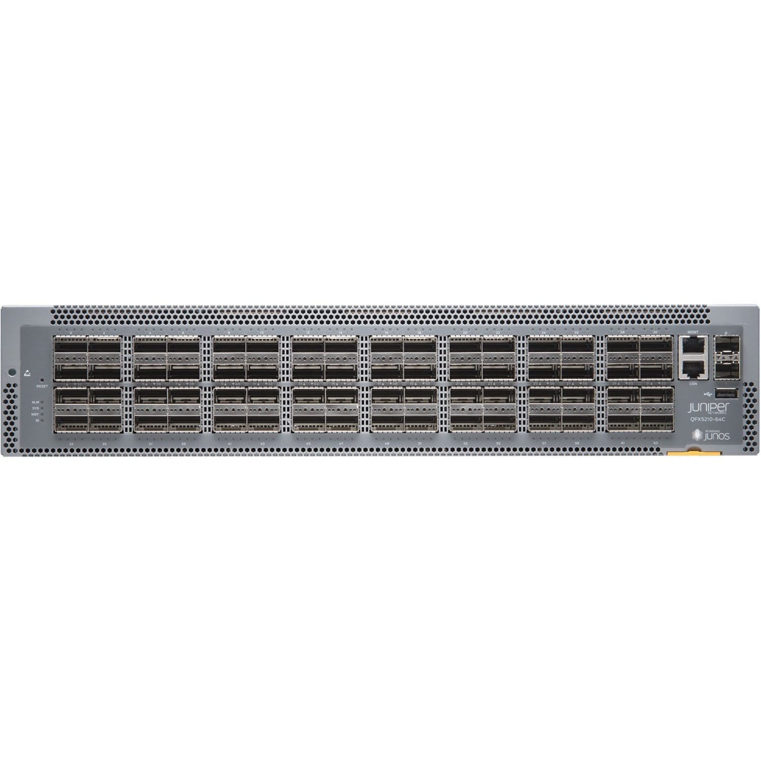 The QFX5210 is a flexible, 64- port, fixed-configuration switch designed for spine-and-leaf applications in next-generation IP fabric networks. Featuring line-rate, high-density QSFP+/ QSFP28 ports supporting 10GbE, 25GbE, 40GbE, 50GbE, and 100GbE connections, the QFX5210 offers an advanced L2, L3, and MPLS feature set. This allows network operators to build large, high-density IP fabrics that support network virtualization and intelligent traffic forwarding based on proven, Internet-scale technology, while enabling easy upgrades to 25GbE and 50GbE servers.