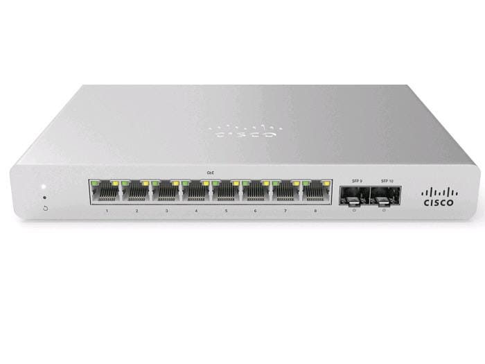 Product Description: Cisco Meraki Cloud Managed MS120-8 – switch – 8 ports – managed Device Type: Switch – 8 ports – managed Enclosure Type: 1U Subtype: Gigabit Ethernet Ports: 8 x 10/100/1000 (PoE+) + 2 x Gigabit SFP Power Over Ethernet (PoE): PoE+ PoE Budget: 124 W Performance: Switching capacity: 20 Gbps ¦ Forwarding rate: 14.88 Mpps Capacity: VLANs supported: 4094 ¦ MAC forwarding entries: 16000 Jumbo Frame Support: 9600 bytes Remote Management Protocol: SNMP Features: Flow control, auto-negotiation, VLAN support, auto-uplink (auto MDI/MDI-X), IGMP snooping, Syslog support, port mirroring, E-mail alert, Broadcast Storm Control, firmware upgradable, Spanning Tree Protocol (STP) support, Rapid Spanning Tree Protocol (RSTP) support, DHCP snooping, Access Control List (ACL) support, Quality of Service (QoS), SMS alert, STP Root Guard, fanless, DHCP client, security lock slot (cable lock sold separately), crossover detection, Single Sign-On (SSO) support, Role-Based Access Control (RBAC), Cisco Discovery Protocol, STP BPDU Guard, Zero-touch provisioning (ZTP), DSCP to CoS Mutation Compliant Standards: IEEE 802.1D, IEEE 802.1Q, IEEE 802.1p, IEEE 802.3af, IEEE 802.3ad (LACP), IEEE 802.1w, IEEE 802.1x, IEEE 802.1ab (LLDP), IEEE 802.3at Power: AC 120/230 V (47 – 63 Hz) Dimensions (WxDxH): 8.9 in x 9.1 in x 1.7 in Weight: 3.42 lbs - General